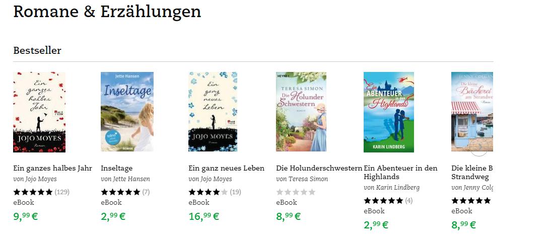 Das ist so nicht richtig. Wie im Screenshot oben zu sehen ist, ist die SP Autorin Jette Hansen auch unter Romane & Erzählungen hinterlegt. Bei Thalia gibt es eine eigene Kategorie für Selfpublishingtitel. Das heißt aber nicht, dass die Titel nicht auch wie alle anderen Verlagstitel in den passenden Kategorien zu finden sind.